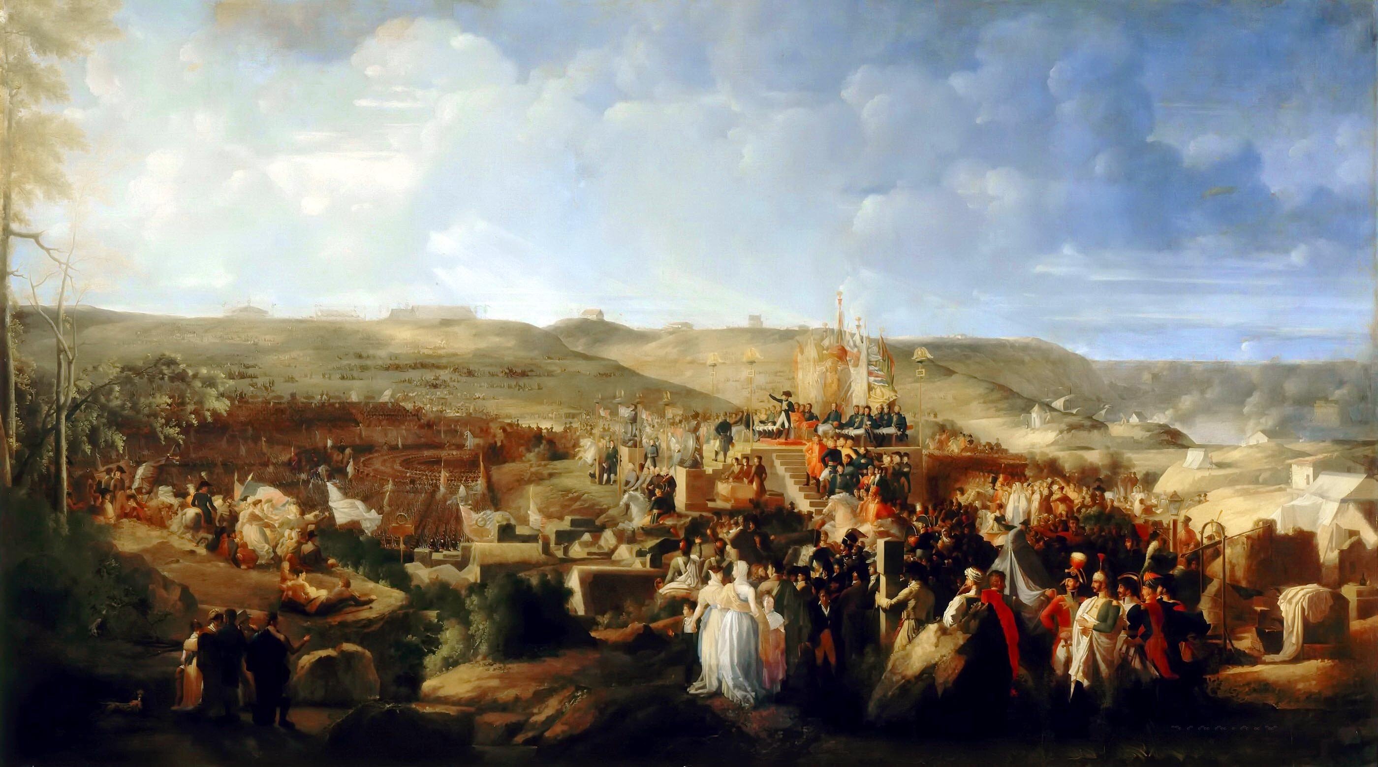 Наполеон раздает Кресты Почетного легиона в Булонском лагере на берегу Ла Манша 16 августа 1804 года во время подготовке вторжения в Англию