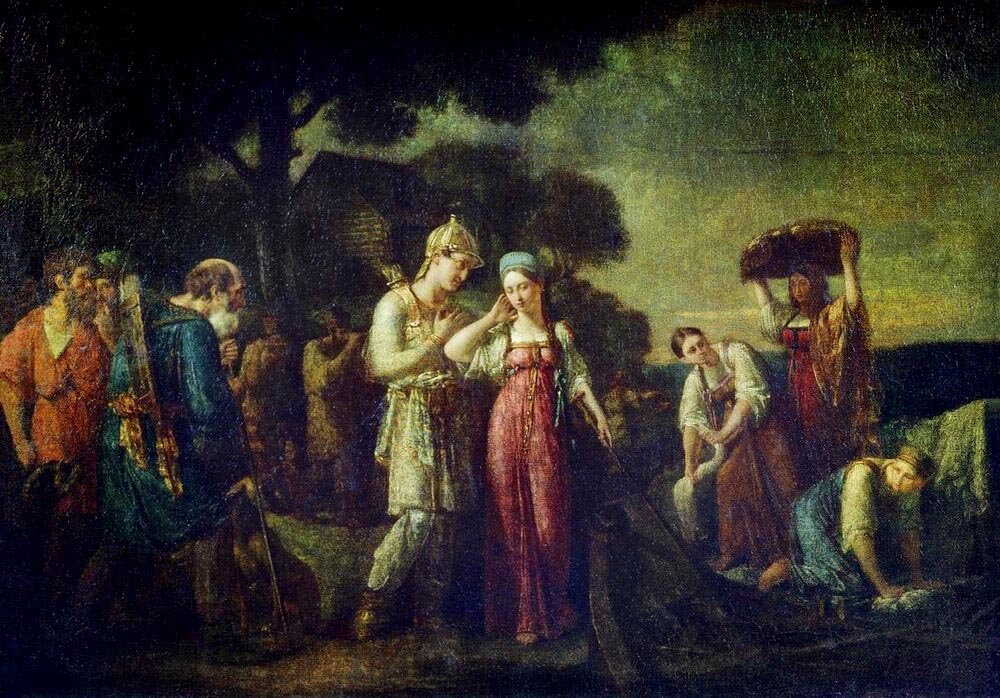 :"О великом князе Игоре, как он сочетался браком с блаженной Ольгой. Когда еще совсем юный Игорь был в Псковской земле — рассказывают некоторые дивное сказание — однажды тешился он охотой и увидел на той стороне реки хорошую добычу; и не мог он перейти на ту сторону реки, потому что не было лодки, и увидел он, что кто-то плывет по реке в лодке, и позвал он лодочника к берегу, и велел перевезти себя за реку. И когда плыли они, взглянул Игорь на гребца того и увидел, что это девица (а это была блаженная Ольга) совсем юная, красивая и отважная. Он никогда ее раньше не видел, и вид ее поразил его (а ведь сказано в Писании: «Похотливые очи зарятся на запретное»). И разгорелась в нем страсть, и обратился он к ней с бесстыдными словами. Она же поняла коварство этих непристойных слов и, пресекая его непристойные речи, не как юная, но как умудренная зрелым умом, сказала, обличая его: «Зачем напрасно позоришь себя, о князь, склоняя меня на срам? Зачем, думая о неподобающих вещах, постыдные слова произносишь? Не обольщайся, видя меня, молодую девушку, совсем одну, и не надейся — не возьмешь меня силой. Хоть я неученая, и очень молодая, и проста нравом, как ты видишь, но я понимаю, что ты обидеть меня хочешь и говоришь непристойные слова, которых я и слышать не хочу. Лучше подумай о себе, откажись от своего помысла. Пока ты юн, блюди себя, чтобы не победило тебя неразумие, чтобы не пострадать тебе самому. Откажись от всякого беззакония и неправды — если ты сам будешь побежден разными постыдными делами, то как сможешь другим запрещать неправду и как сможешь праведно управлять державой своей? Знай, что если ты не перестанешь соблазняться моей беззащитностью, то лучше мне будет, чтобы глубина реки этой поглотила меня, чем быть тебе на соблазн, так я избегну поругания и позора, а ты не впадешь в соблазн из-за меня». И много другого разумного сказала она о целомудрии. Это первое проявление, благое и достойное удивления, благоразумного юношеского целомудрия блаженной Ольги, еще не знающей Бога и заповедей его не слышавшей. Такую премудрость и чистоты соблюдение обрела она от Бога, что удивился Игорь зрелому ее разуму и благоразумным ее словам. И сразу Игорь отказался от своего юношеского порыва, и, устыдившись, в молчании перебрался через реку, запечатлев все это в сердце своем до времени, и вернулся в Киев. Когда же пришло время, повелел он, чтобы нашли ему невесту, и стали ему подыскивать ее, как это было в обычае для властителей. И многими он пренебрег и вспомнил дивную в девицах Ольгу, отвагу и красоту которой видел своими глазами, и из уст которой слышал речи разумные, и целомудренный нрав которой видел. И послал он за ней родича своего, вышеназванного князя Олега, и взял ее в жены с подобающей честью, и так сочетались они законным браком".
