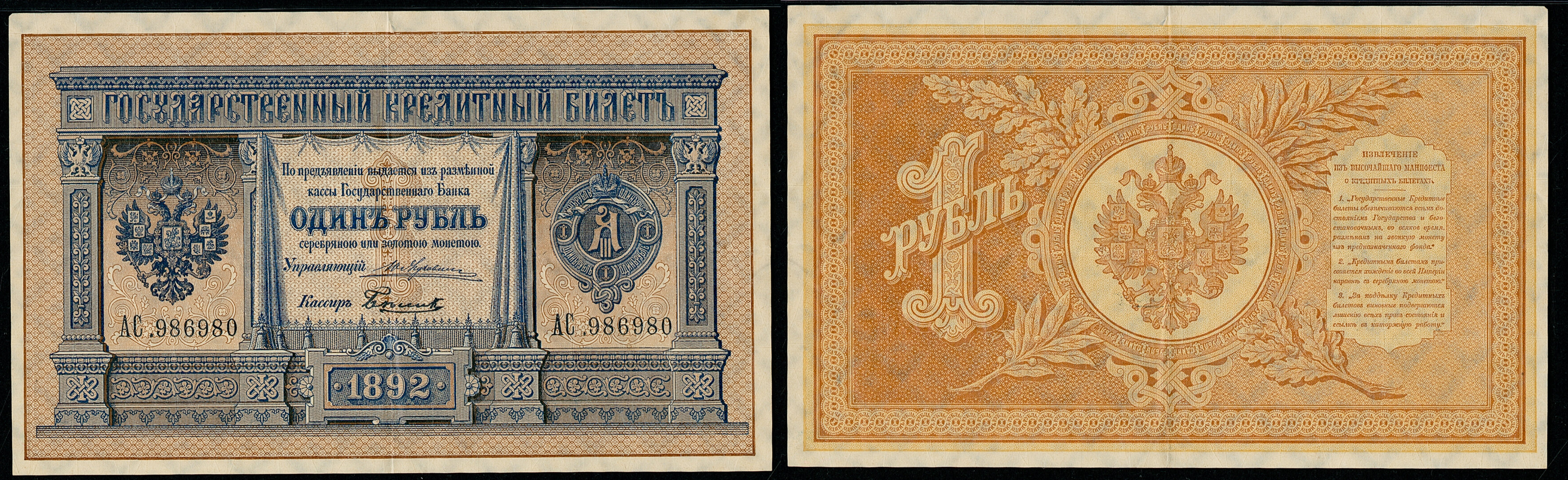 Один рубль 1892 г.