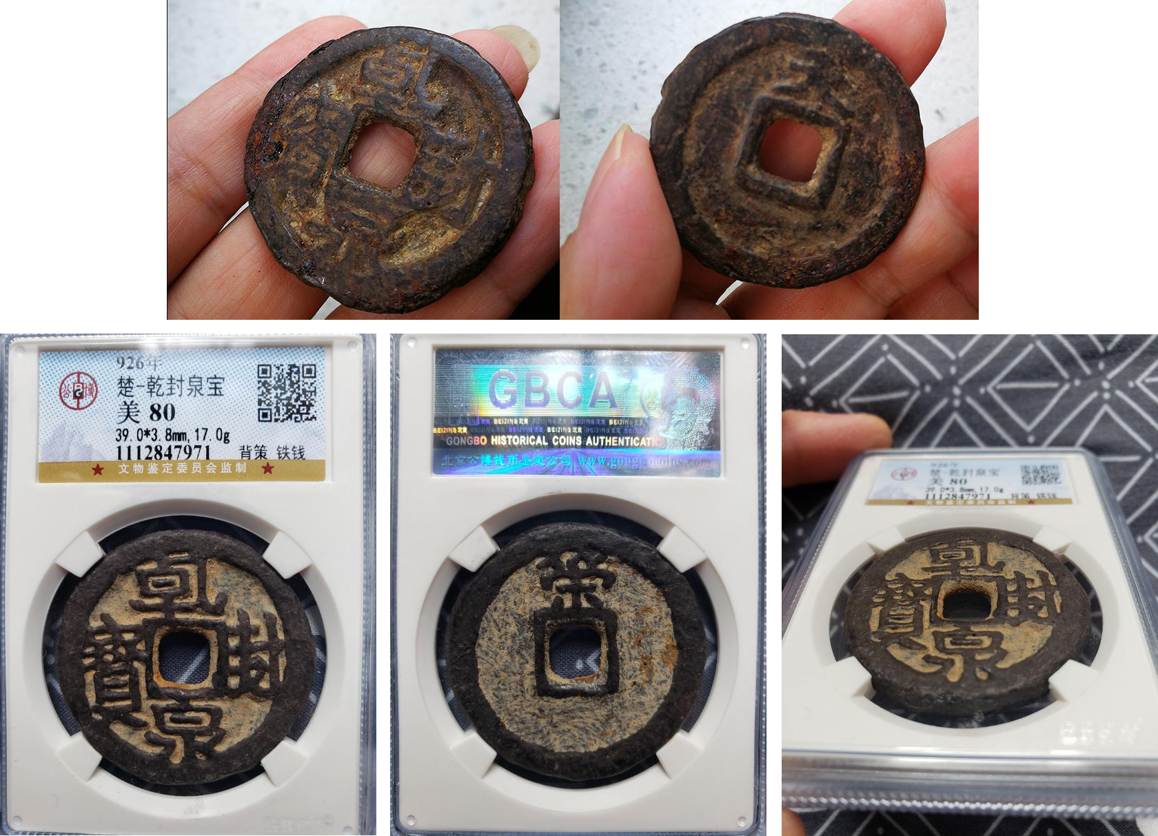 Здоровенные 10 вэнь qiān fēng quán bǎo, почти 4 см, 17 гр железа. Проданы за $288