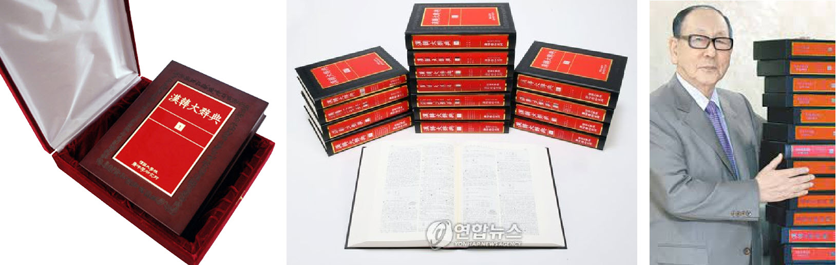 Вершина пафоса в отдельных коробочках выложенных тканью. Превзойти Тайвань смог лишь корейский Han-Han Dae Sajeon (漢韓大辭典) издательства Dankook University. Он создавался с 1977 по 2008 гг. (разработка обошлась в 25 миллионов долларов) и содержит 474 тысячи слов в 16 томах. Его дополняют 4 тома иероглифов, созданных и используемых только в Корее. Сколько это стоит - найти не удалось.