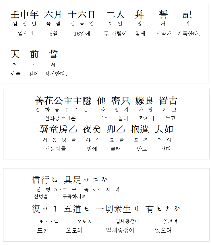 Сверху вниз. Иду (이두, 吏讀) — наиболее архаичная система записи корейского языка иероглифами ханча, далее хянчхаль (향찰, 鄕札) - подмножество иду и кугёль