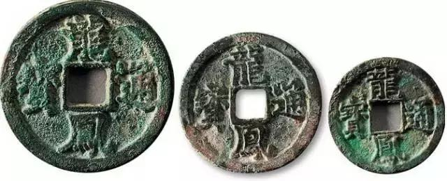 Здесь изображены номиналы в 1, 2 и 3 вэнь (а были еще и 5!) lóngfèng tōng bǎo (龍鳳通寶) отливаемые реставрированной Сун Хань Линьэра в 1355–1366 гг.