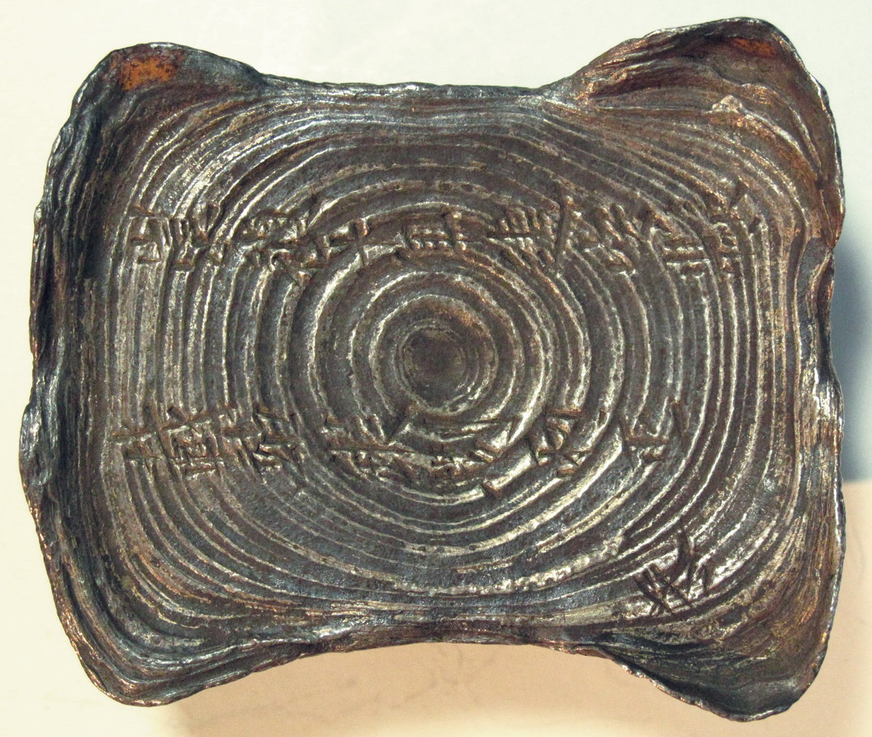 Типичный, грубо выплавленный слиток серебра поздней Мин (1637 г.), 8 таэлей (307 гр.), продан за $800 в 2012 г.