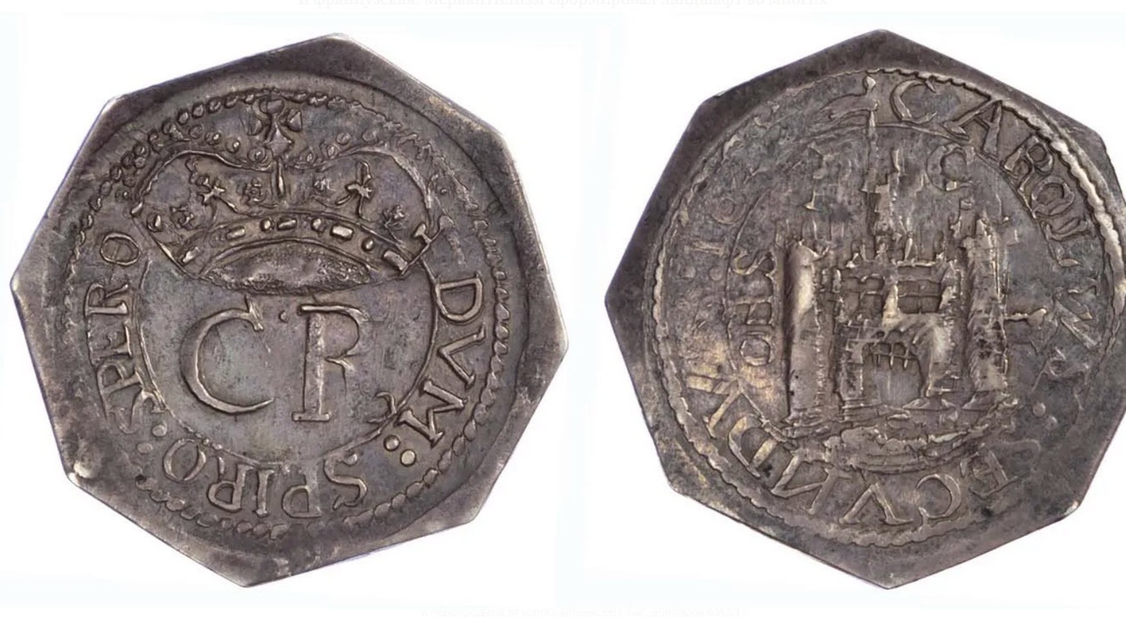 Гражданская война в Англии привела к появлению огромного количества осадных монет, многие из которых чрезвычайно ценные. 1648 г., шиллинг замка Понтефракт, осажденного сторонниками Кромвеля. Продан за 7500 фунтов стерлингов.