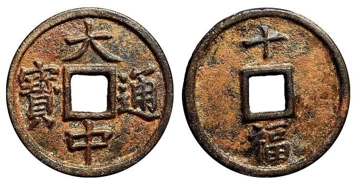 Вообще Dàzhōng tōngbǎo каждого номинала существовали десятки разновидностей, так как отливались они в два существенно разных периода — когда Хунъу еще был повстанцем и когда он стал полноправным императором, и на разных дворах. Даже по весу расхождение может быть огромным, известны экземпляры в 10 вэнь массой от 19 (!) до 30 грамм.
