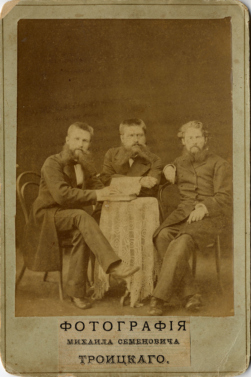 Фотограф М.С. Троицкий. Портрет Ивана Федоровича Троицкого (в центре) с друзьями. 1890-е г.