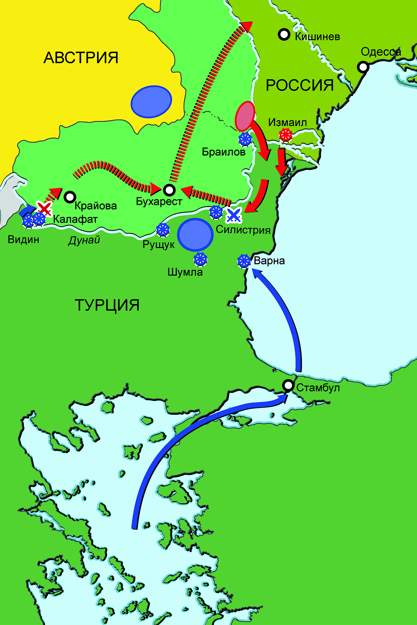 Карта кампании 1854 г. на Балканах (Крымская война 1853–1856 гг.)