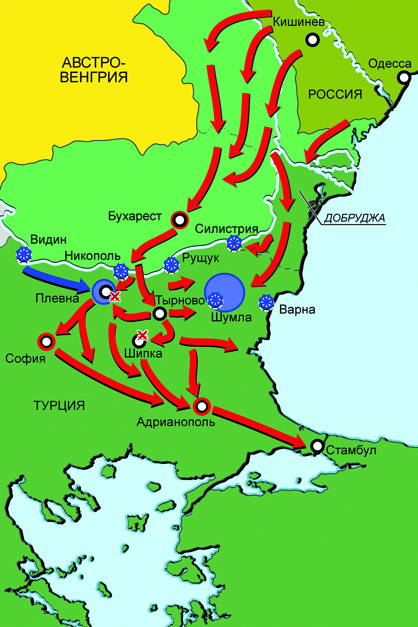 Карта кампании 1877–1878 гг. на Балканах (Русско-турецкая война 1877–1878 гг.)