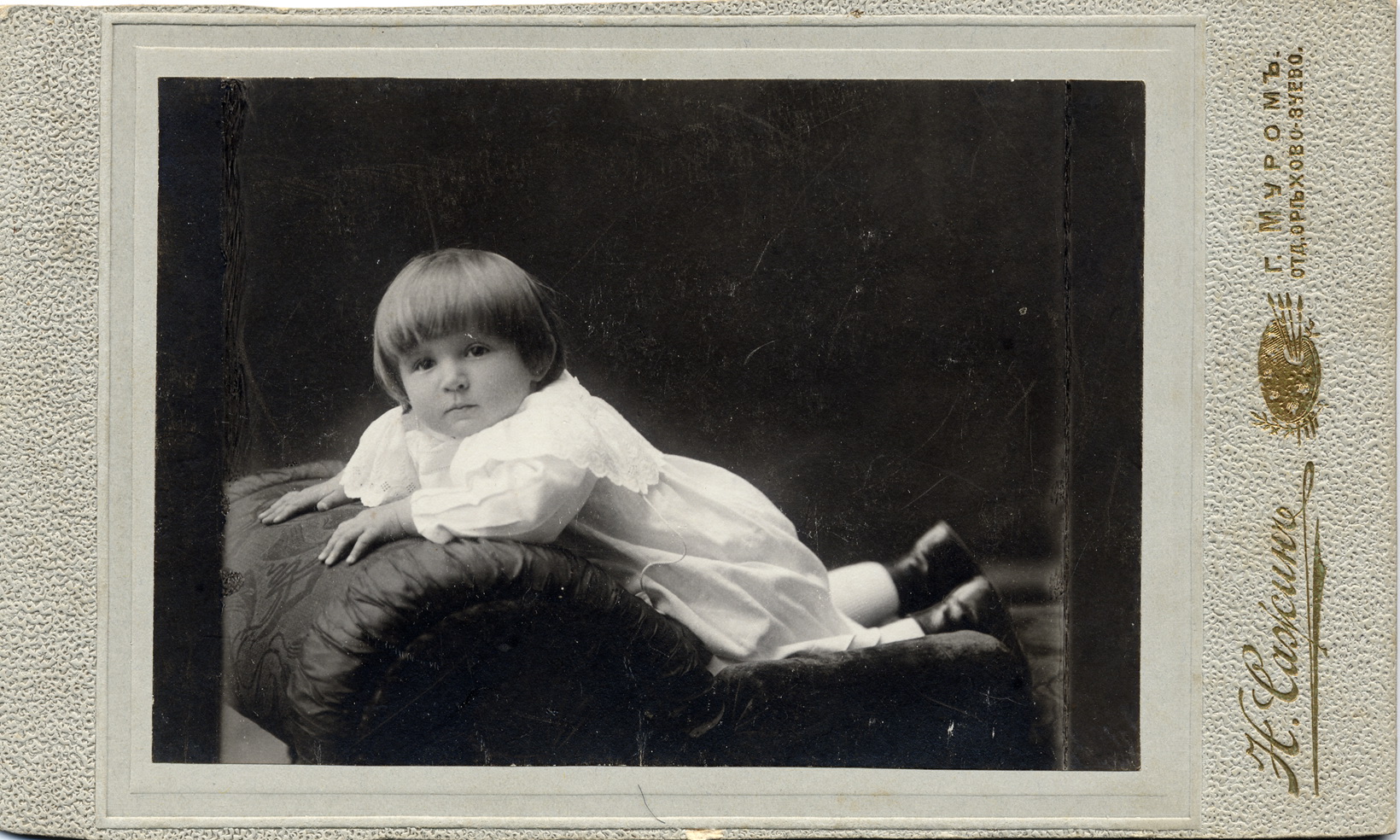 Фото Н.Н. Сажина, Муром. Портрет мальчика Всеволода Жадина. 1908-1909. На паспарту.11,6 х 19,5 Муромский историко-художественный музей