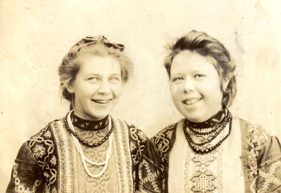 Сестры Мяздриковы в народных костюмах. Муром.