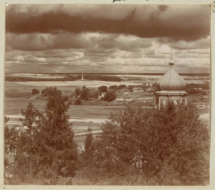 1911. Вид с колокольни Спасо-Бородинского монастыря на курган Раевского и Семеновский овраг.