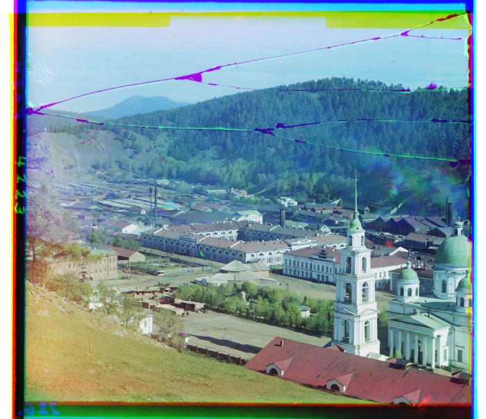 Вид на Златоустовский завод. Вдали гора Таганай. Златоуст, Уфимская губерния.