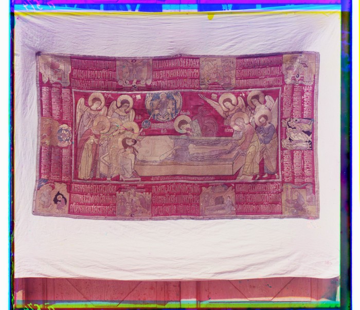 1911. Плащаница (1631) времен Царя Михаила Феодоровича. В ризнице Успенского собора в кремле.