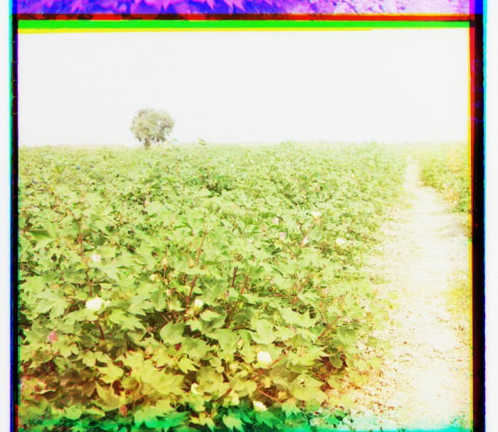 Бакинская губерния, Джеватский уезд, Муганьская степь. Николаевка. Слева хороший хлопок. Справа его нет. Та и другая стороны унавожены, но солонец гуляет, ибо в прошлом году было обратно.