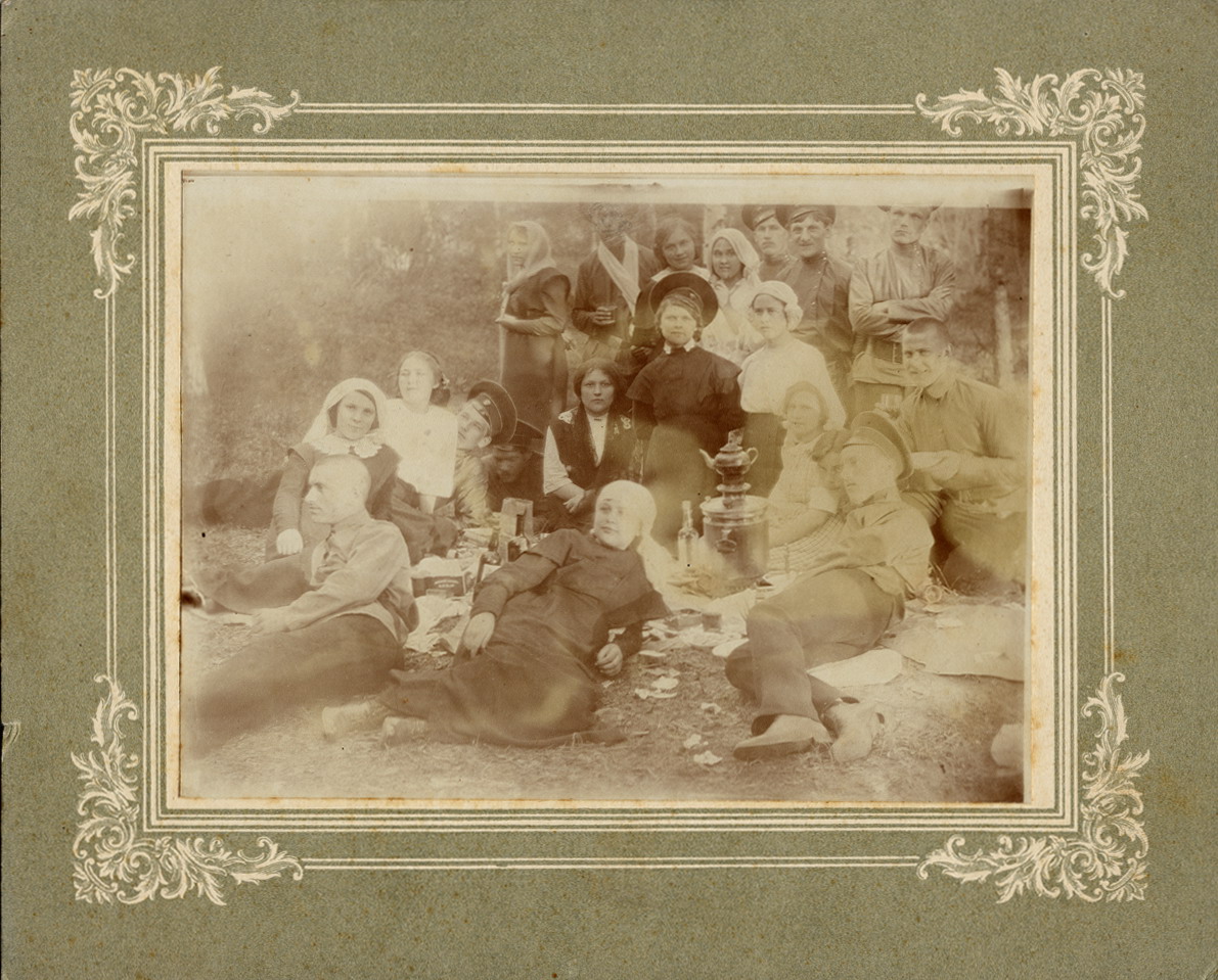 Неизвестный фотограф. Учитель А.И.Земский в группе молодежи на пикнике. Муром, май 1914 г.