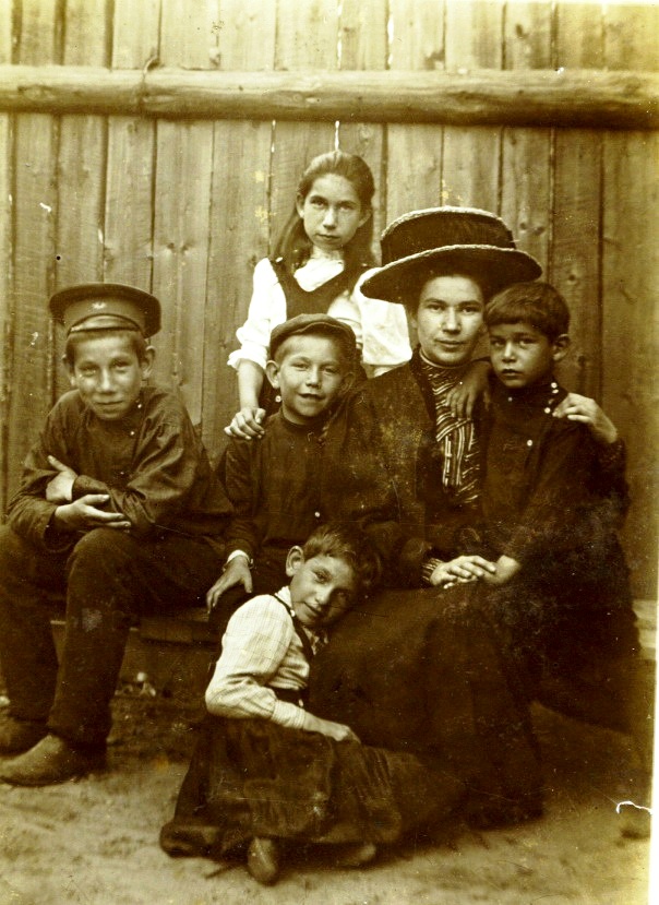 Портрет семьи Дегтяревых во дворе дома у забора.Муром, 1910-е гг.