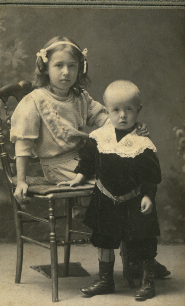 Фотоателье Н. Сажина, Муром. Детский портрет: Софья и Иван Сокольские. 1908-1909.