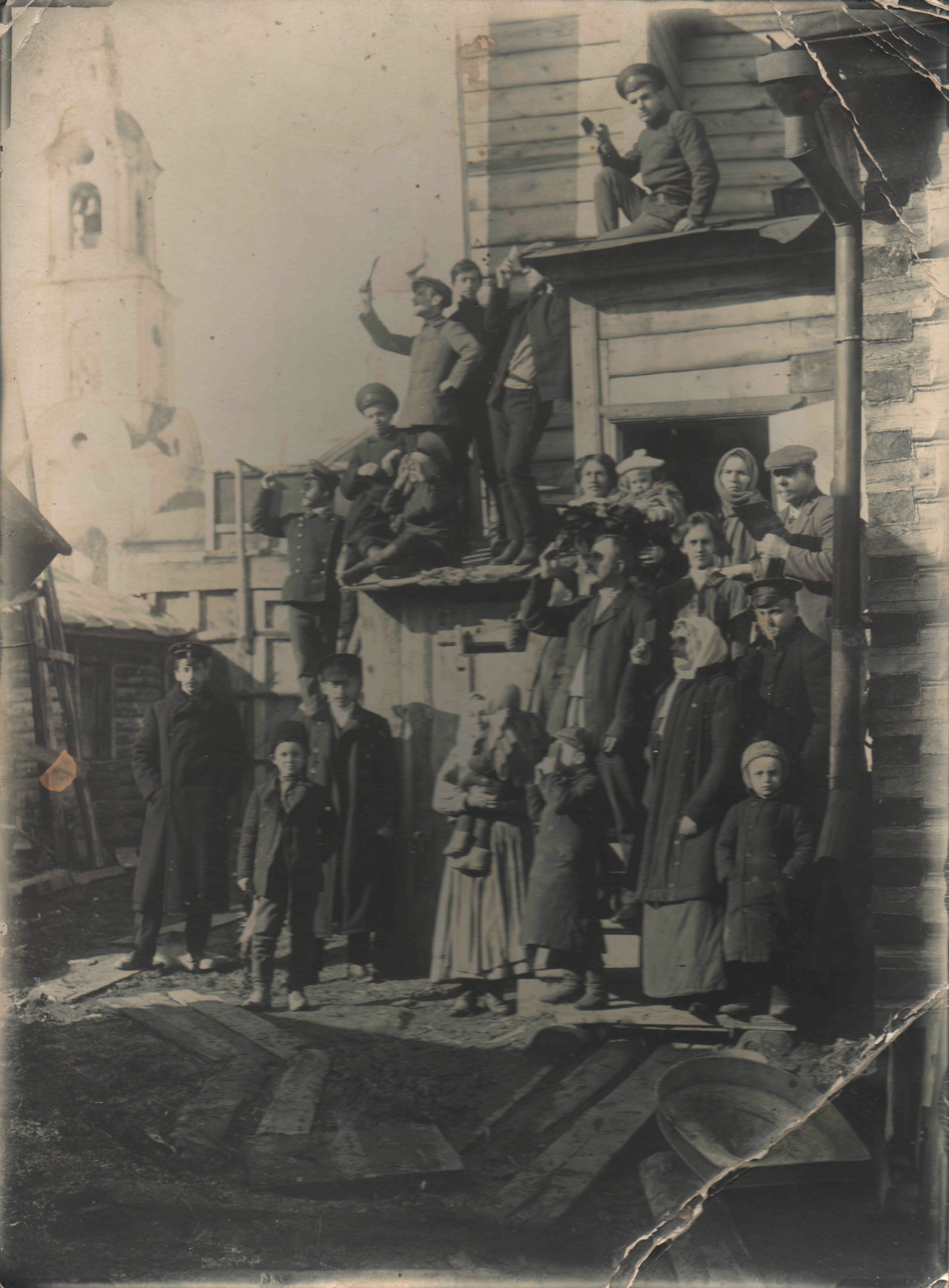 Фото В.А. Крылова. Жители наблюдают через закопченные стеклышки солнечное затмение. Арзамас.1905.