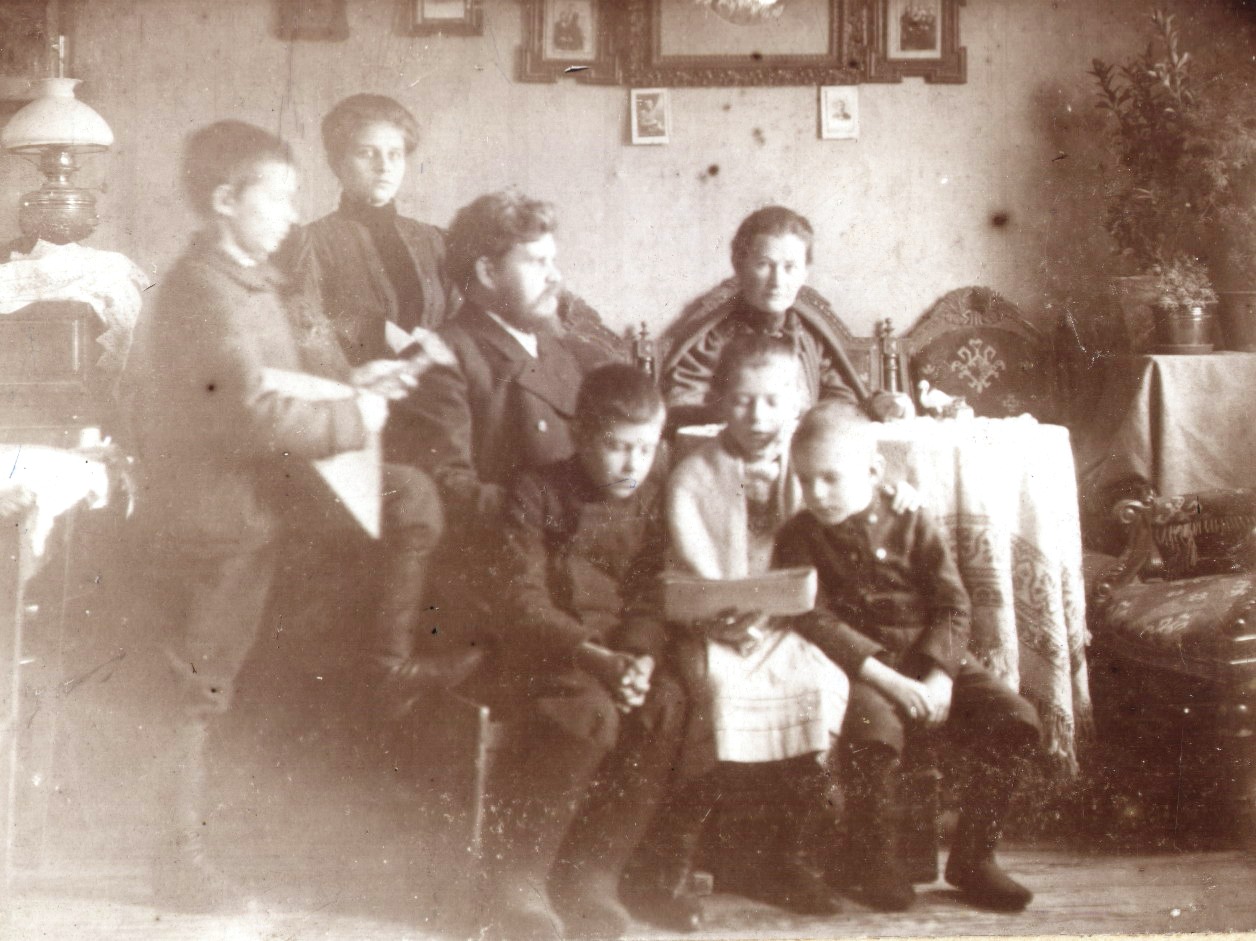 Семья Тагуновых в интерьере комнаты. Муром, 1910-е г. 6 х 8,5. Архив Тагуновых.