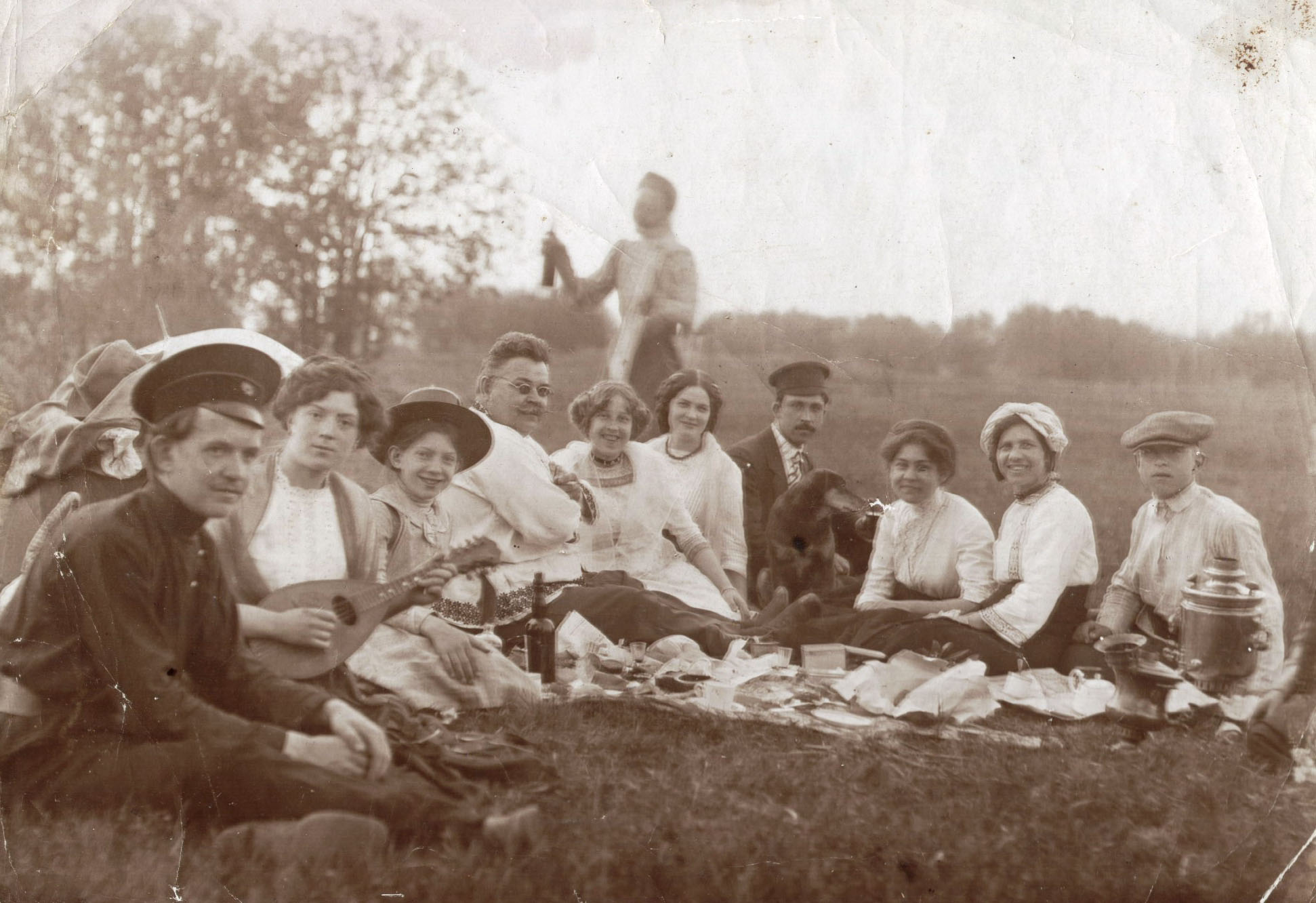 Семья Тагуновых на свадебном пикнике. Муром, 1910-е г. 9,1 х 13. Архив Тагуновых.