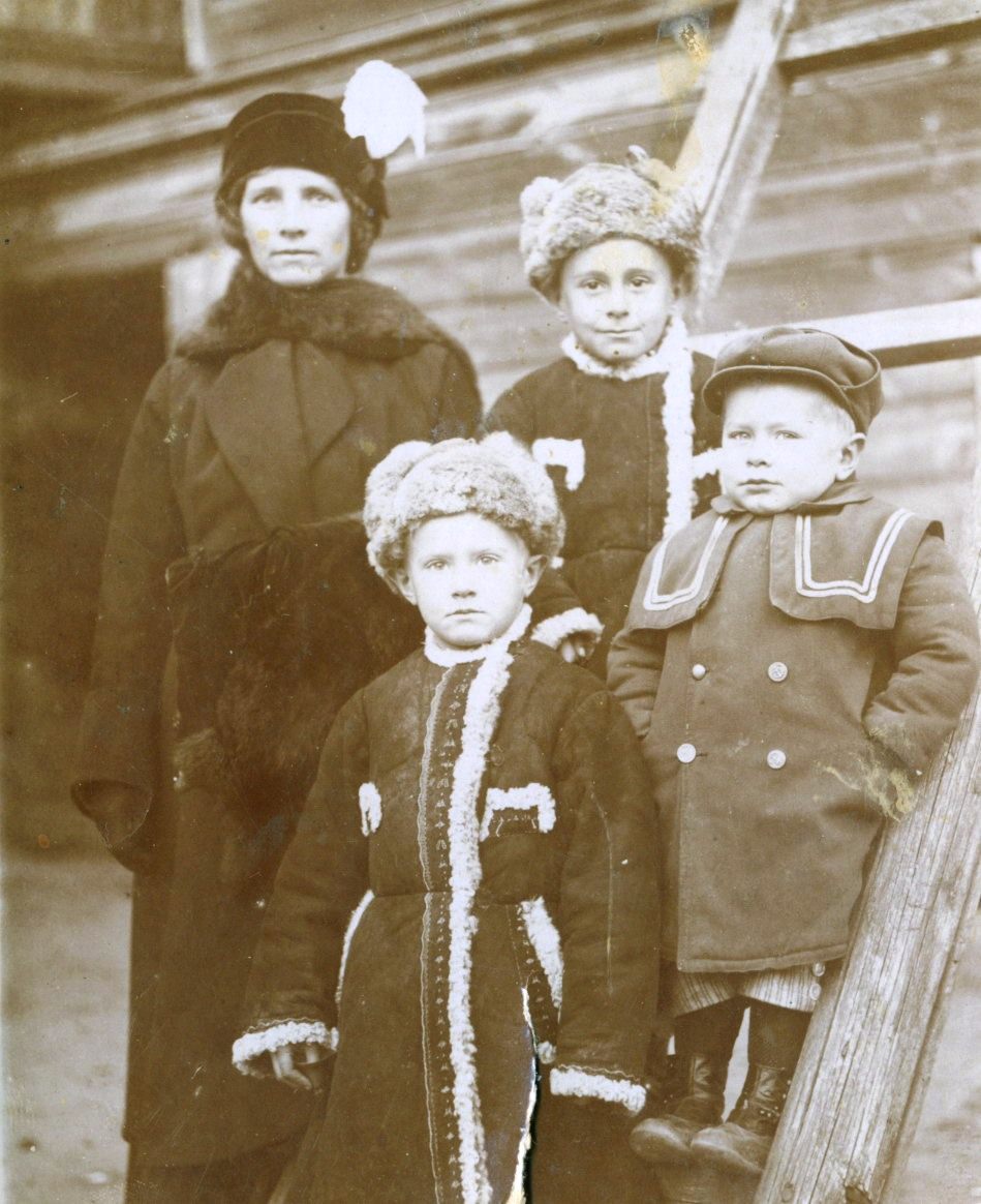 Мария Андреевна Зворыкина с сыновьями: Володей, Илюшей, Шурой. Муром.