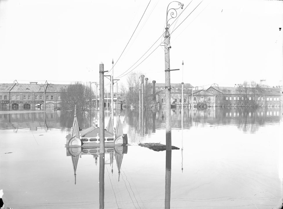 Нижегородская ярмарка во время половодья. Вид на Театральную площадь. Нижний Новгород.