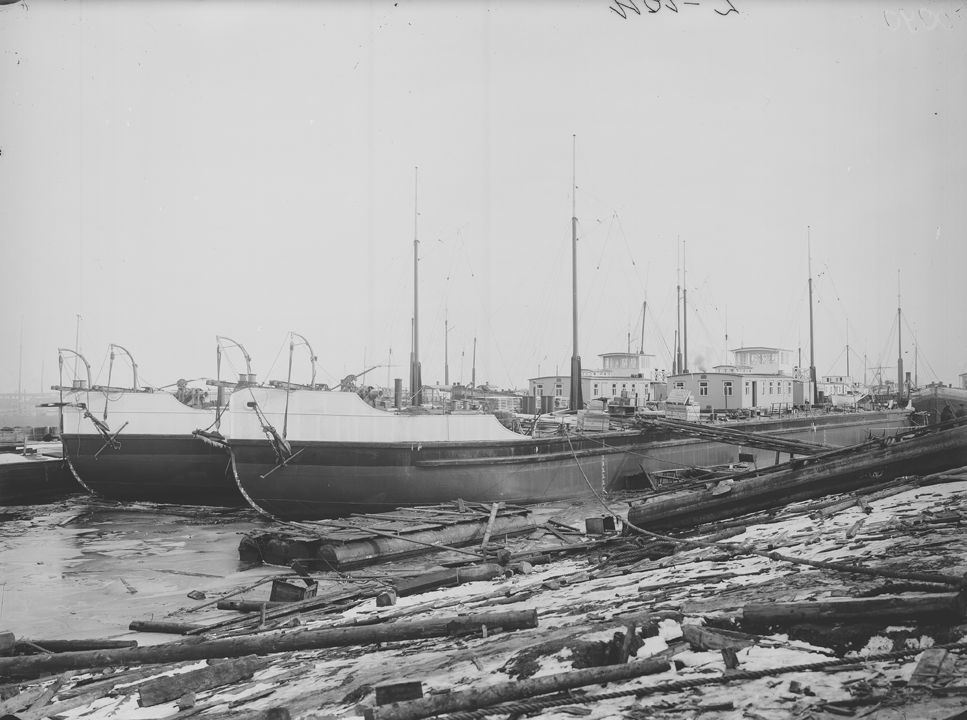 Общий вид барж. Дата: 1911 г.Место съемки: г. Н.Новгород Автор: М.П. Дмитриев