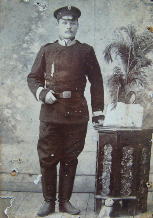 Портрет Василия Матросова, старшего унтер – офицера в выходном мундире. Дата: к. ХIХ в. – н. ХХ вв. Автор: Барон Г. Место события: Беларусь, с. Разводово, ст. Барановичи.