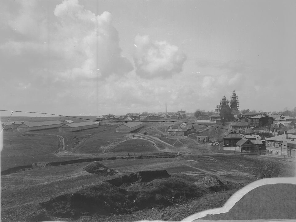 Общий вид жилых домов за острогом.(На заднем плане Церковь Всемилостивого Спаса).Дата: к. ХIХ в.Автор: М.П. Дмитриев Место съемки: г. Н.Новгород