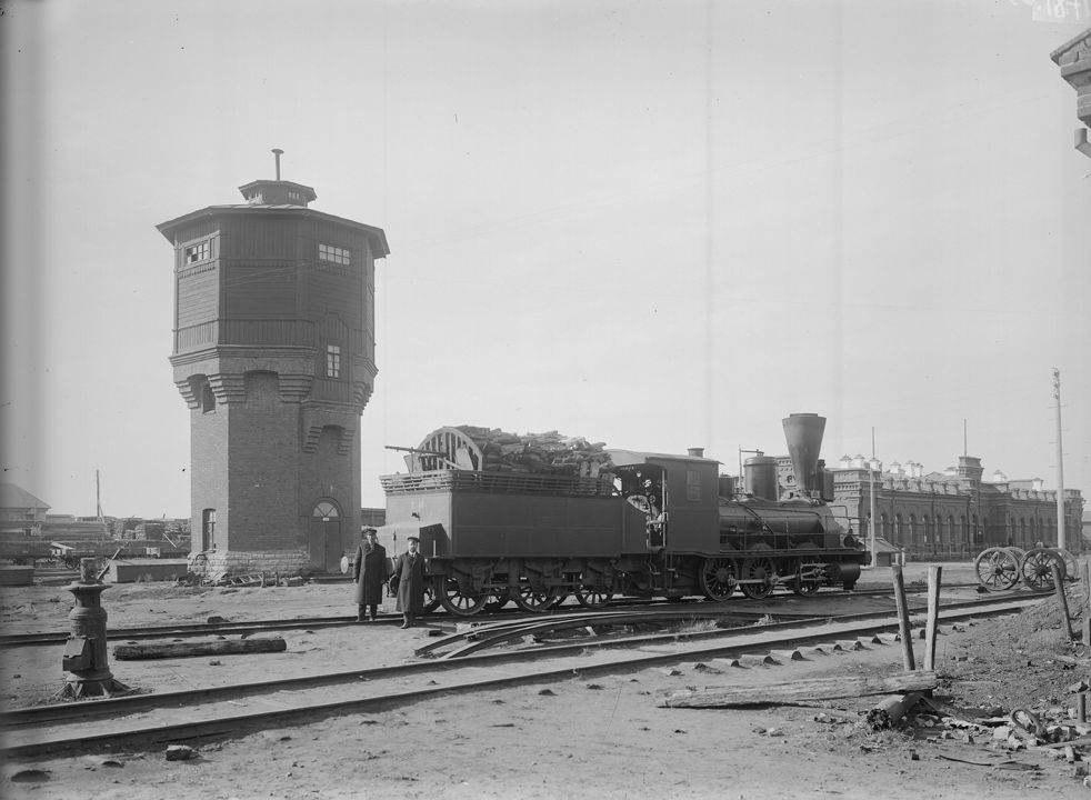 Водонапорная башня на железнодорожных путях. Автор: М.П. Дмитриев Место события: с. Лукоянов, Нижегородская губерния Дата: к. ХIХ - н. ХХ вв.