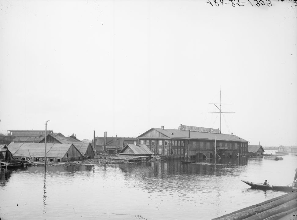 Сормово завод №112. Вид на судостроительную верфь завода. Во Время половодья. Дата: 1903 г. Автор: М.П. Дмитриев Место съемки: Н.Новгород