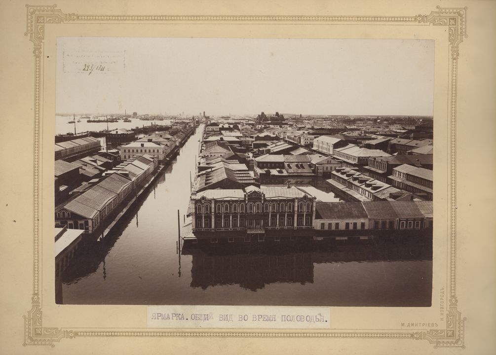 Нижегородская Ярмарка во время половодья. Общий вид.Дата: к. XIX в. Место съемки: г. Н.Новгород Автор: М.П. Дмитриев