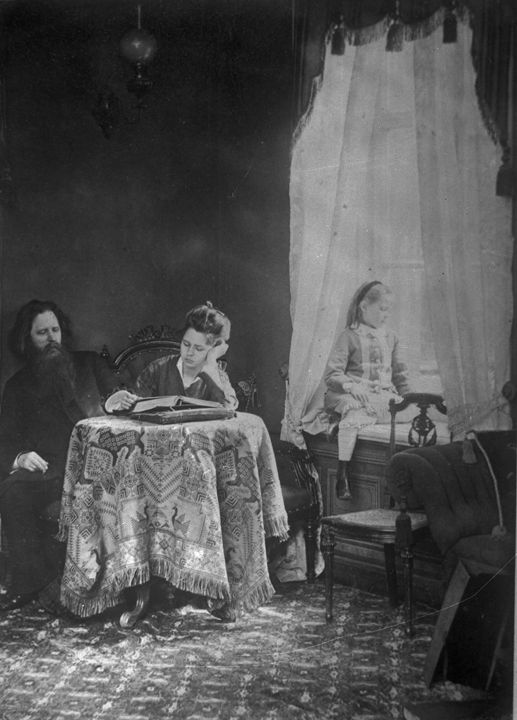 А.О. Карелин с дочерьми Людмилой (сидит за столом) и Ольгой (сидит на подоконнике). Автор: А.О. Карелин Место события: г. Н.Новгород