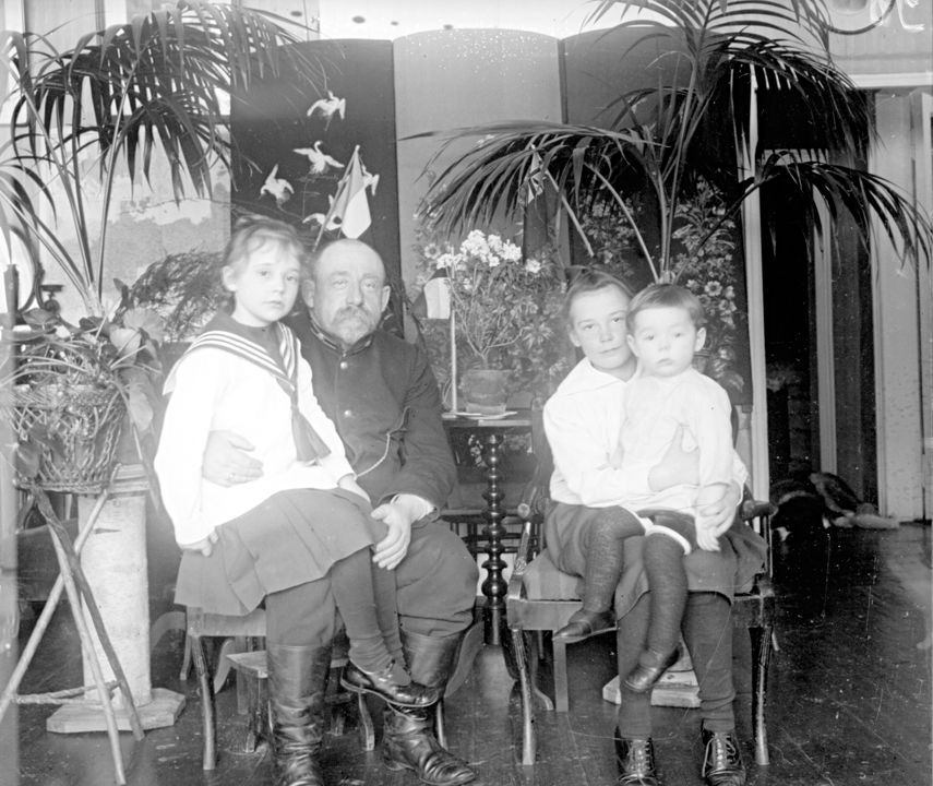 Семейный портрет Хомутовых. Мужчина и трое детей. Автор: А.А. Зевеке Место события: г. Н.Новгород Дата: к. XIX - нач. ХХ вв.