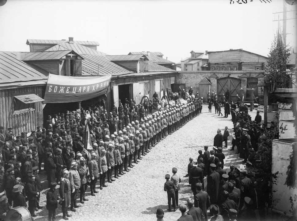 Сормовская вольно-пожарная дружина. Речь директора и председателя к дружине. Автор: М.П. Дмитриев Место события: г. Н.Новгород Дата: 1913 г.