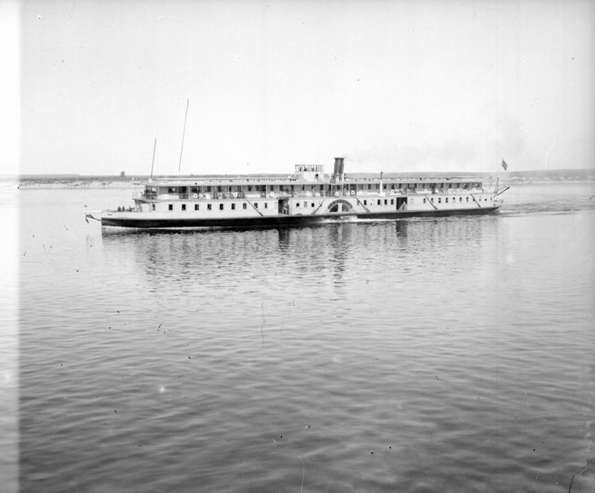 Заднеколесный пароход на реке Волге. Дата: к. XIX н.XX вв. Место съемки: г. Н.Новгород Автор: В.А. Зевеке