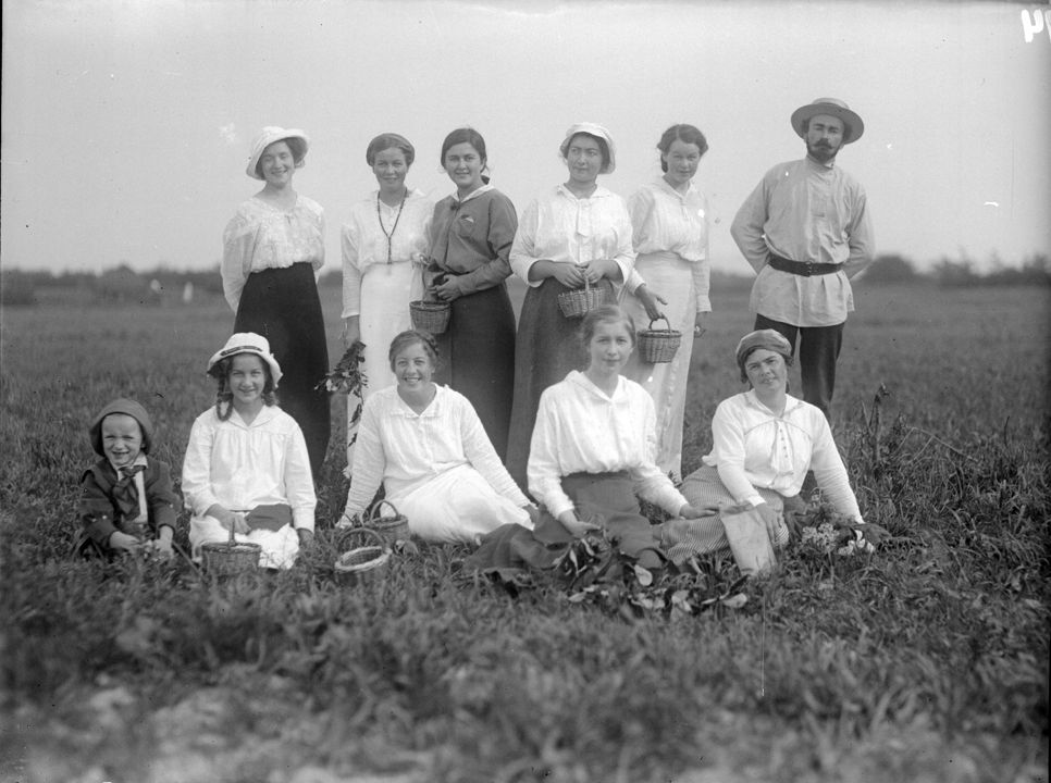 Группа людей в поле на прогулке. Автор: В.А. Зевеке Место события: г. Воткинск Дата: 1915-1916 гг.