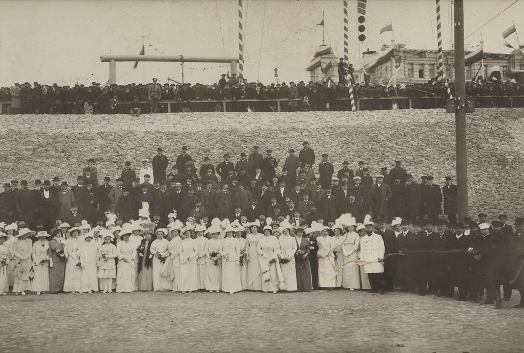 Визит Николая II на празднование 300-летия дома Романовых в г. Н.Новгород. Группа дворянства и купечества при встрече Николая II.