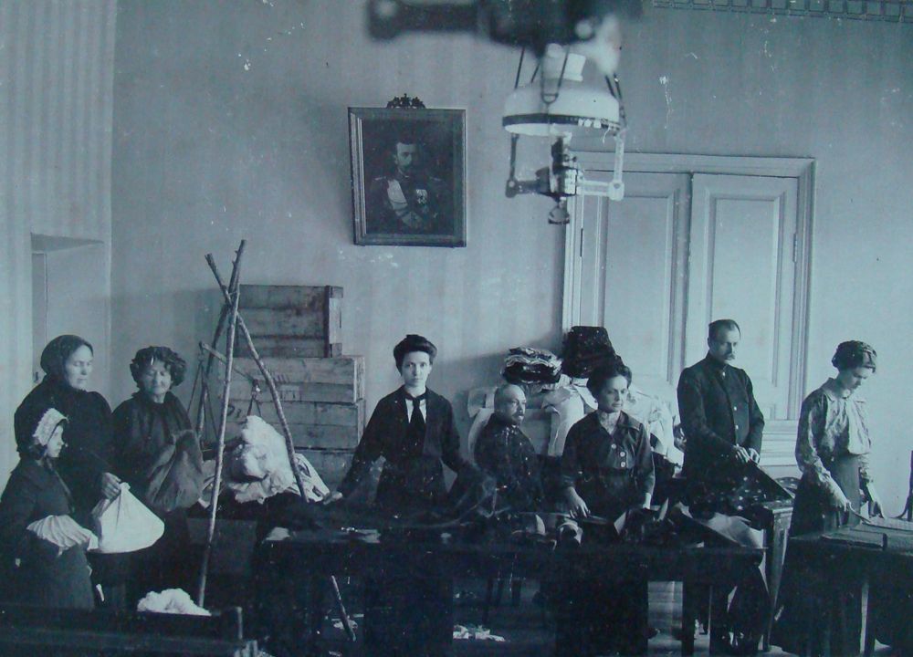 Ученицы Ардатовской женской гимназии за шитьем белья для «Красного креста». Ардатов.