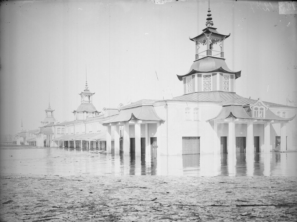 Нижегородская ярмарка во время половодья. Вид на Театральную площадь. Нижний Новгород.