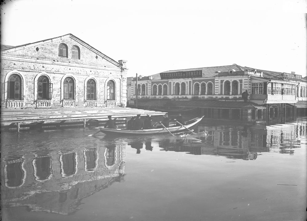 Нижегородская ярмарка во время половодья. Вид на Театральную площадь. Нижний Новгород.