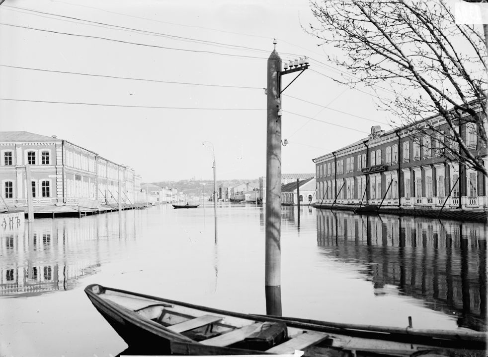 Нижегородская ярмарка во время разлива реки Оки. Вид на улицу Нижегородскую. Нижний Новгород.