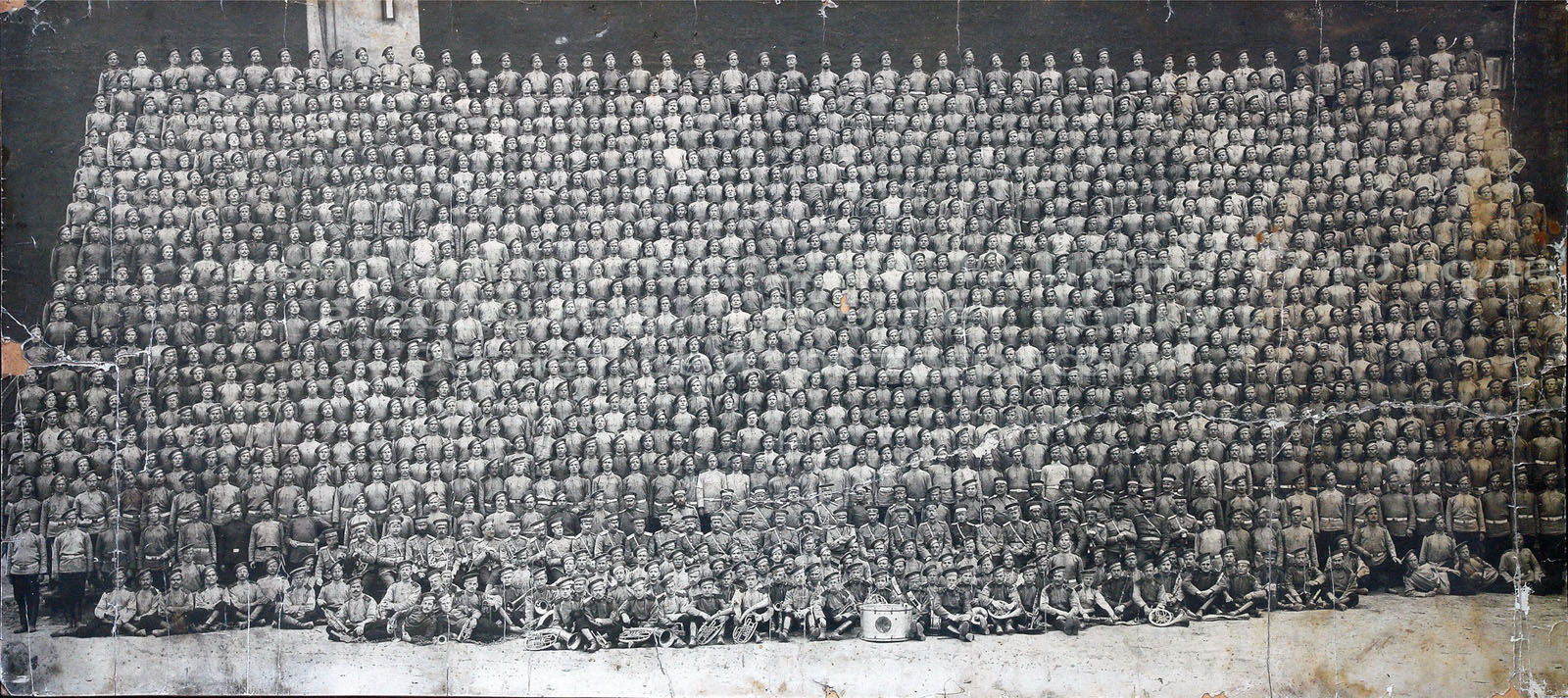 Уникальная фотография лейб-гвардии Кексгольмского Императора Австрийского полка, основанного в 1710 году ещё Петром I и участвовавшего в двадцати войнах. На фотографии изображено свыше 1000 человек, выстроившиеся в 25 рядов по 50 человек в каждом. Размер оригинала составляет 110 х 60 см. Фотоаппарат и объектив, диаметром около 1 метра, были специально построены для этого снимка.