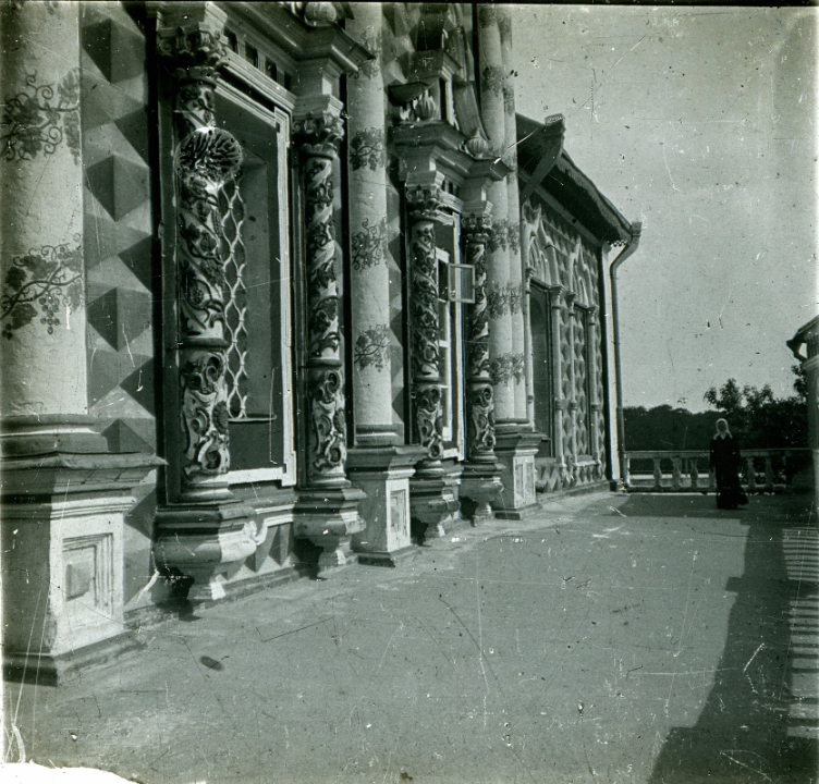 Наталия Павловна Дурдина с матерью и неизвестными женщинами у лестницы перед домом