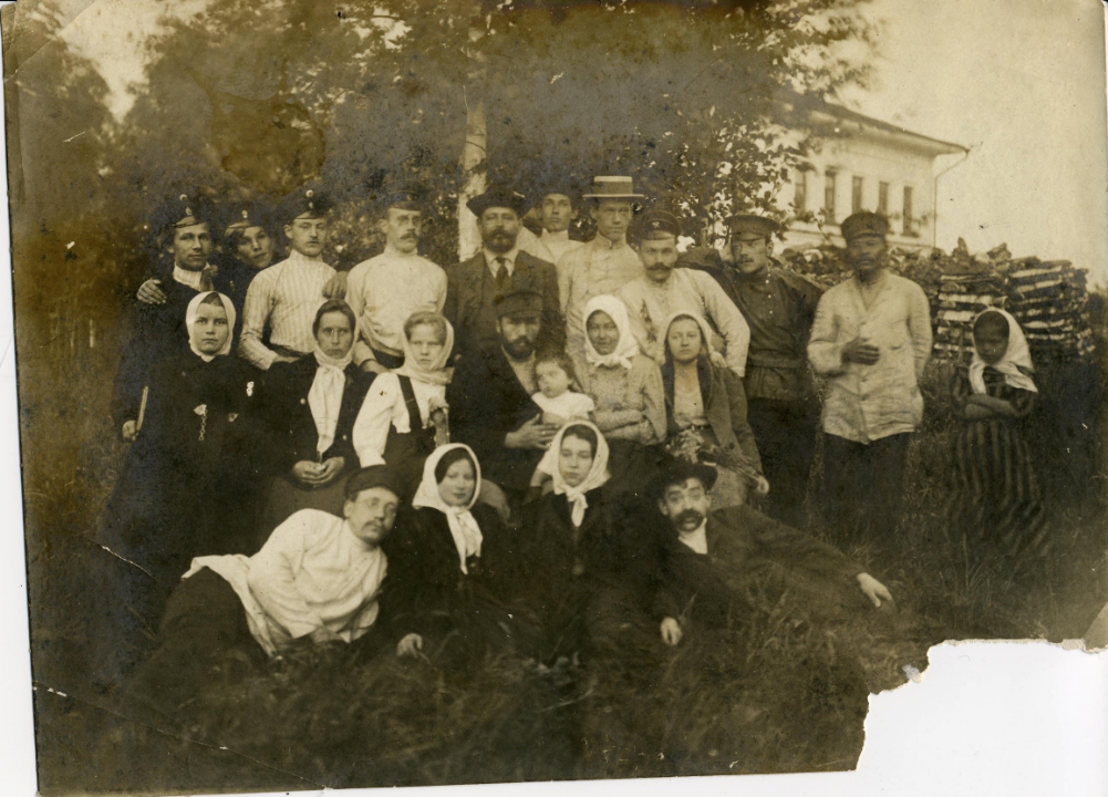 Наталия Павловна Дурдина с матерью и неизвестными женщинами у лестницы перед домом