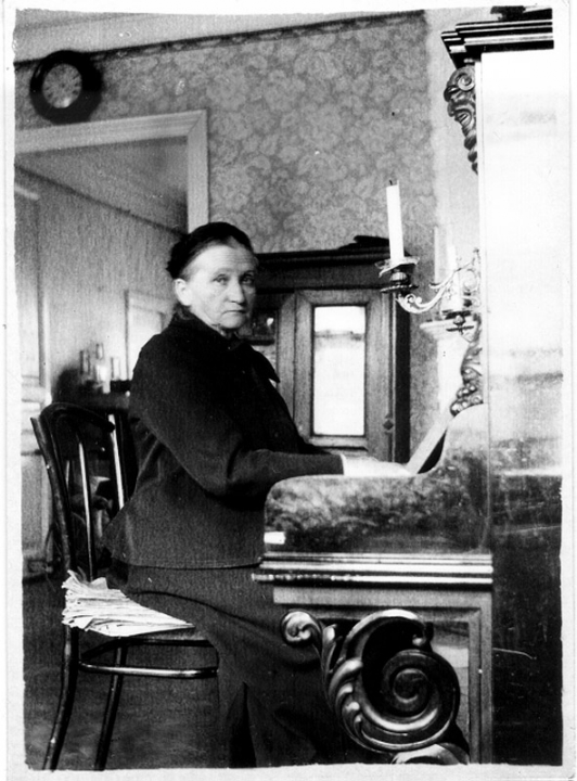 Наталия Павловна Дурдина с матерью и неизвестными женщинами у лестницы перед домом