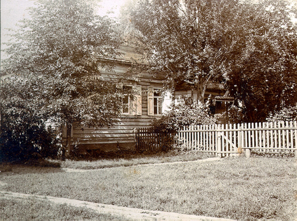 Наталия Павловна Дурдина с матерью и неизвестными женщинами у лестницы перед домом