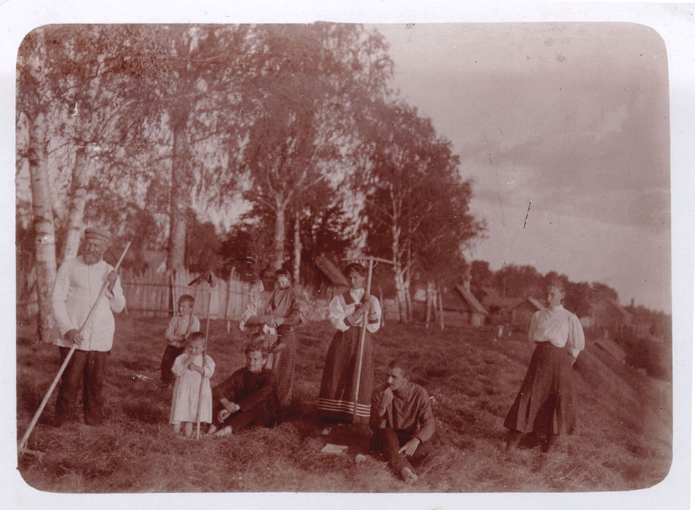 Семья Масленниковых на покосе.