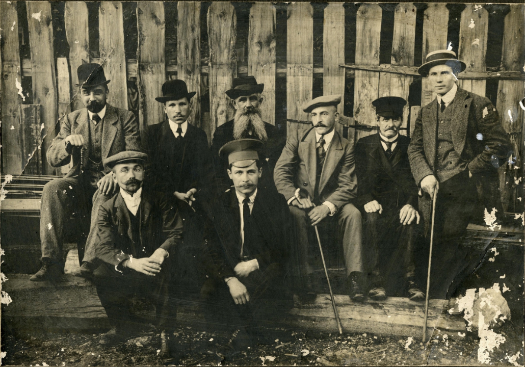 Наталия Павловна Дурдина с матерью и неизвестными женщинами у лестницы перед домом